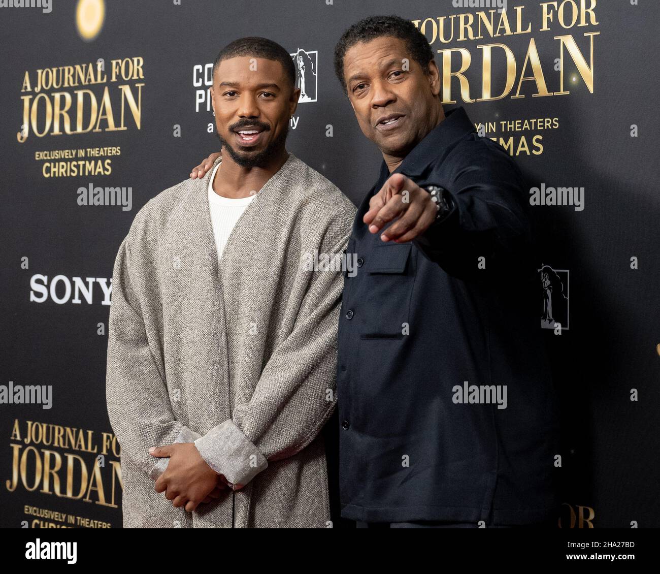 New York Usa 09th Dec 2021 L R Michael B Jordan And Denzel Washington Attend The World Premiere Of A Journal For Jordan At Amc Lincoln Square Theater In New York New York